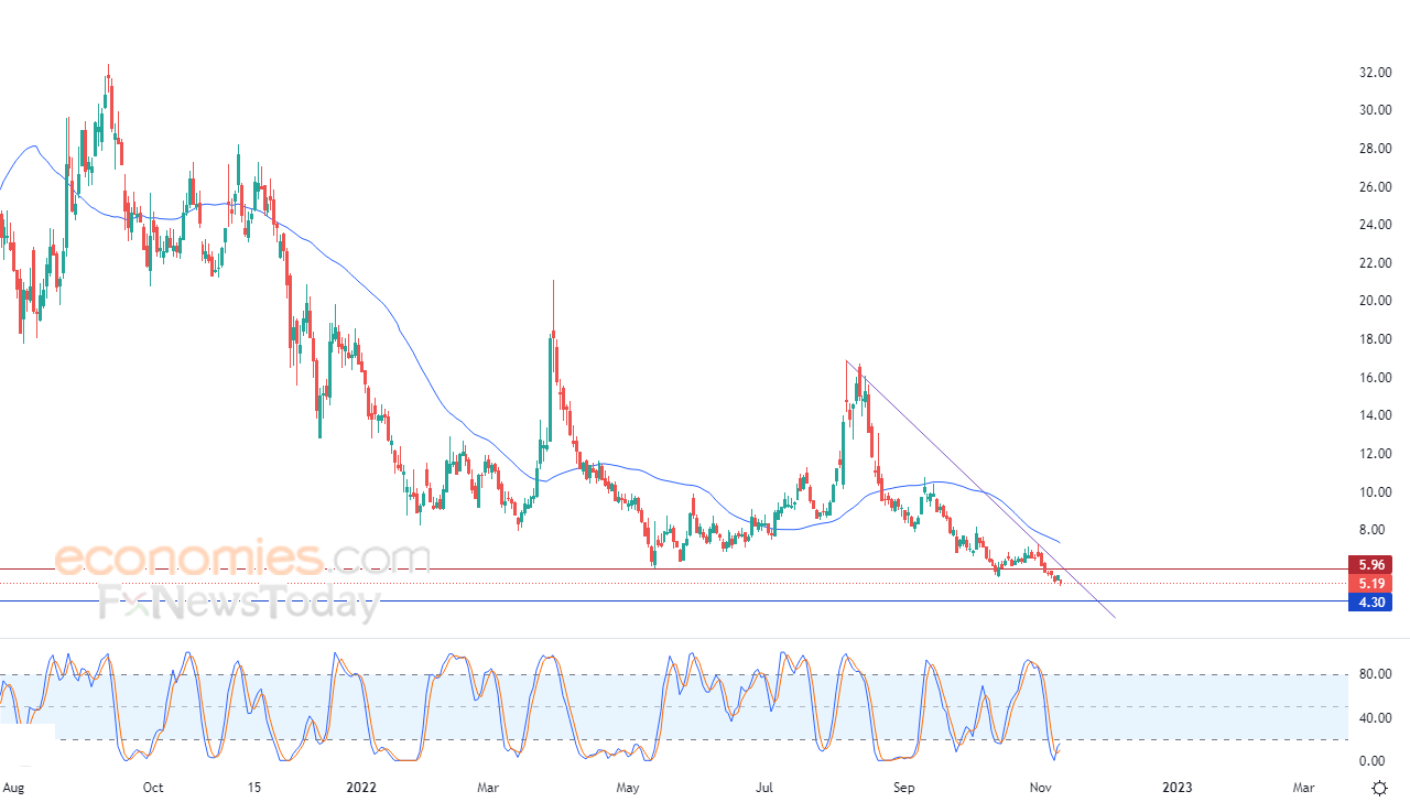 لذلك نحن نتوقع المزيد من الانخفاض للسهم خلال تداولاته القادمة، خاصة طوال استقراره دون مستوى المقاومة 5.96، ليستهدف مستوى الدعم 4.30.