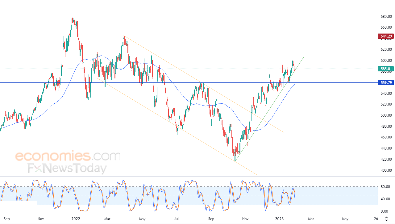 لهذا تشير توقعاتنا إلى المزيد من الارتفاع للسهم خلال تداولاته القادمة، طيلة ثبات الدعم 559.80، ليستهدف مستوى المقاومة 644.30.