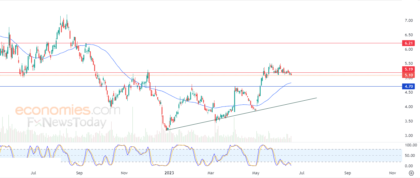 لذلك تشير توقعاتنا إلى ترجيح سيناريو عودة ارتفاع السهم خلال تداولاته القادمة، خاصة في حالة اختراقه للمقاومة 5.20، ليستهدف بعدها مستوى المقاومة 6.20.