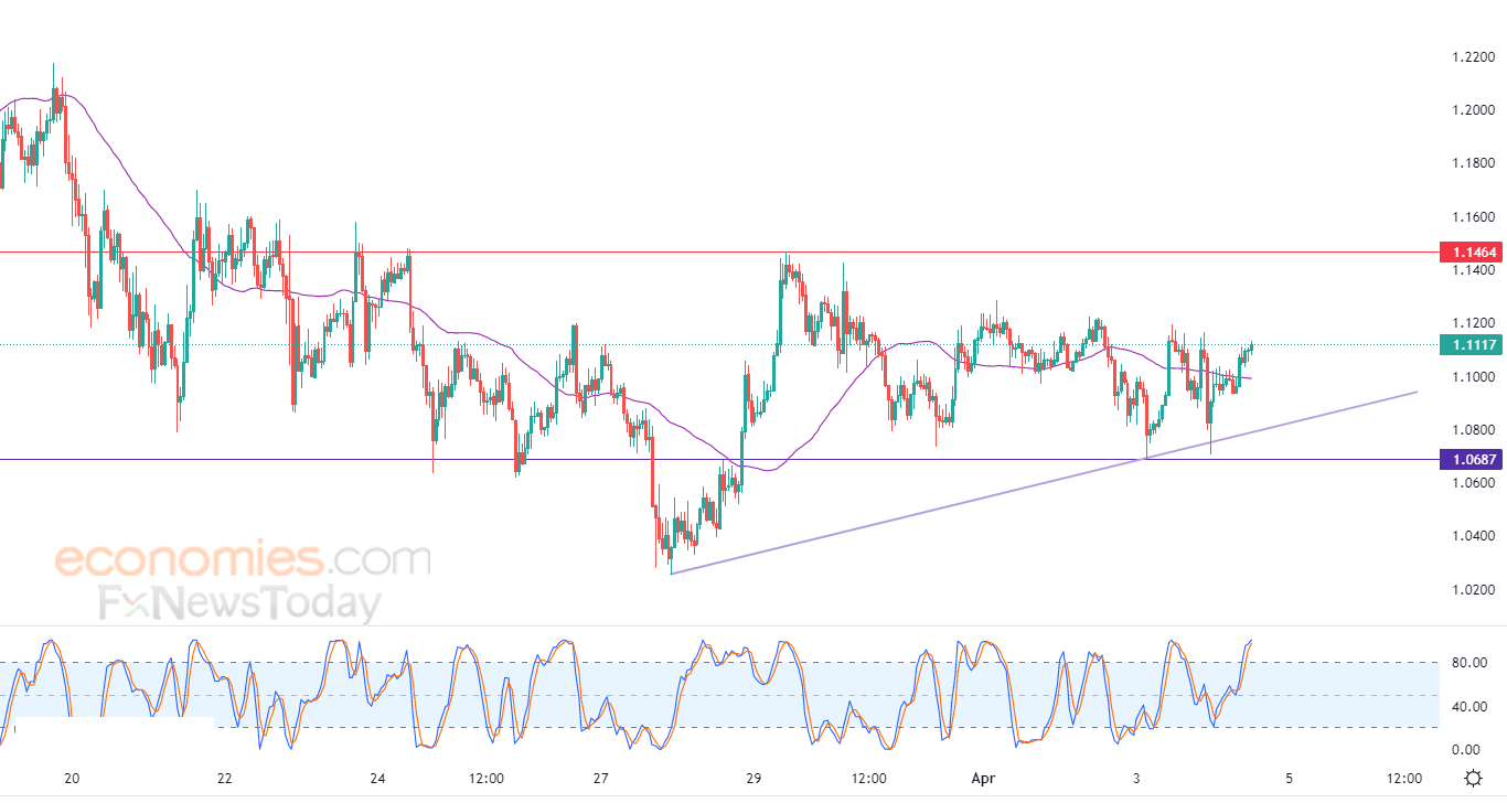 لهذا نحن نتوقع المزيد من الارتفاع للزوج خلال تداولاته القادمة، طيلة ثبات الدعم 1.0687، ليستهدف مستوى المقاومة المحوري 1.1464.