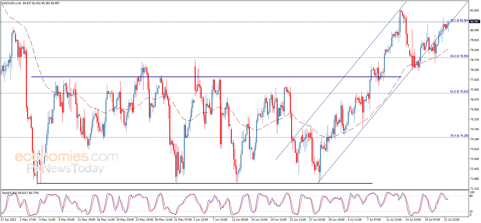 القناة الصاعدة تنظّم الموجة الصاعدة المقترحة، والتي تحصل على دعم مستمر من المتوسط المتحرك 50، مع الإشارة إلى أهمية بناء قاعدة دعم جيدة فوق 80.96 لاستمرار الارتفاع المتوقع.