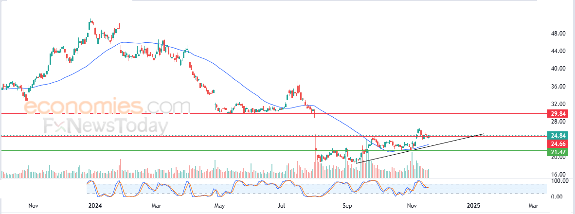 لهذا تشير توقعاتنا إلى المزيد من الصعود لسعر السهم خلال تداولاته القادمة، خاصة في حالة اختراقه لمستوى المقاومة 24.66$، ليستهدف بعدها مستوى المقاومة 29.85$.