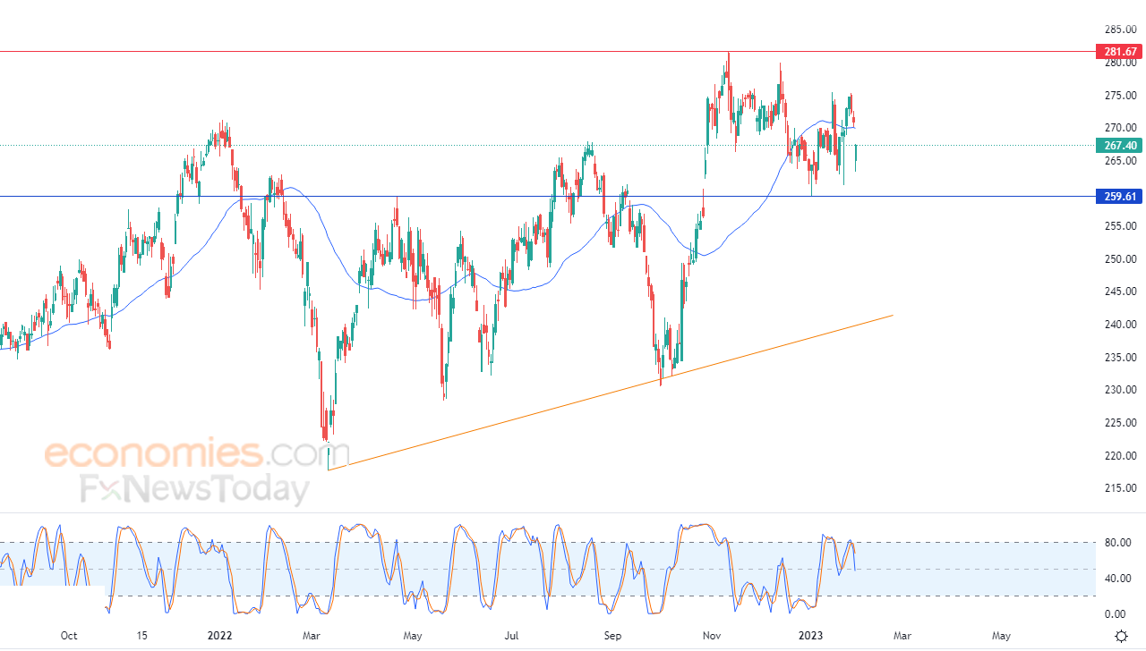 لهذا فتوقعاتنا ترجح عودة ارتفاع السهم خلال تداولاته القادمة، طيلة ثبات الدعم 259.60، ليستهدف مستوى المقاومة المحوري 281.67.