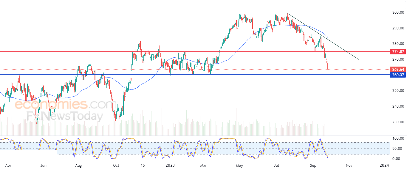 لهذا تشير توقعاتنا إلى المزيد من الانخفاض للسهم خلال تداولاته القادمة، ليستهدف مستوى الدعم المحوري والقريب 260.40 استعداداً لكسره.