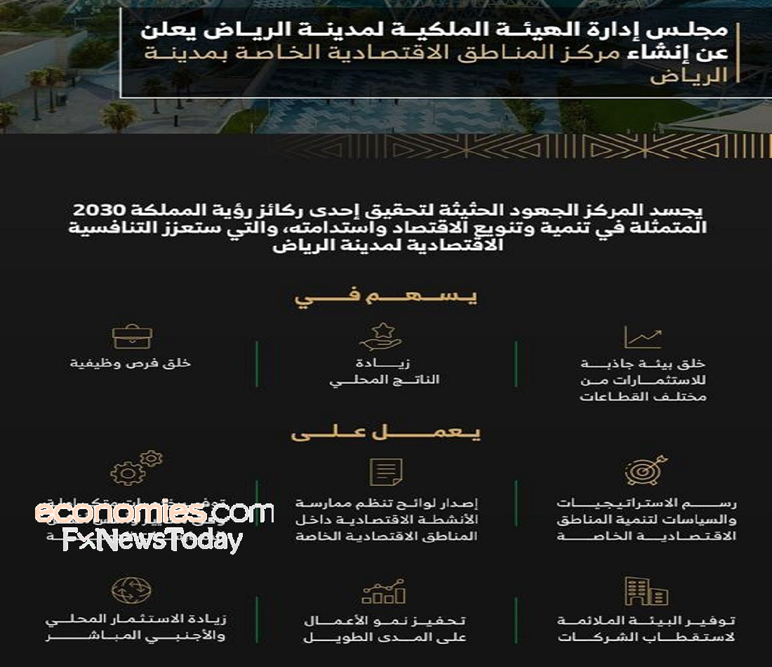 أعلن مجلس إدارة الهيئة الملكية لمدينة الرياض، اليوم، عن إنشاء مركز المناطق الاقتصادية الخاصة بمدينة الرياض؛ لتعزيز القدرة التنافسية للأعمال في العاصمة، وتحويلها إلى مركز إقليمي رئيس للشركات العالمية وتعزيز أثرها الاقتصادي كواحدة من أكبر اقتصاديات المدن في العالم، والإسهام في تحقيق مستهدفات رحلة التحول الوطنية التي تهدف إلى تنويع الاقتصاد الوطني.